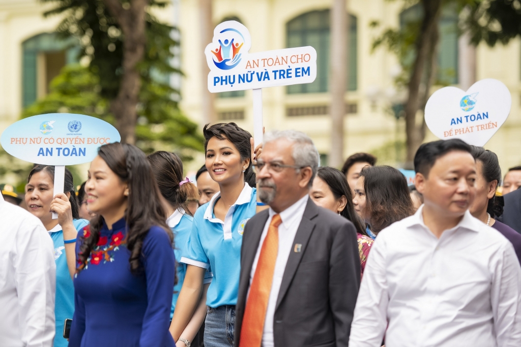 H'Hen Niê xuống đường vận động cho năm 'An toàn phụ nữ và trẻ em gái 2019'